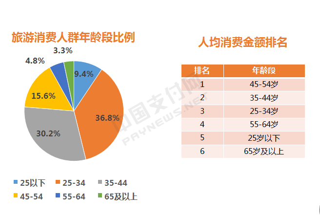 旅游消費(fèi)人群中,年齡段在25-34歲的消費(fèi)人數(shù)最多,45-54歲的人均消費(fèi)最高。